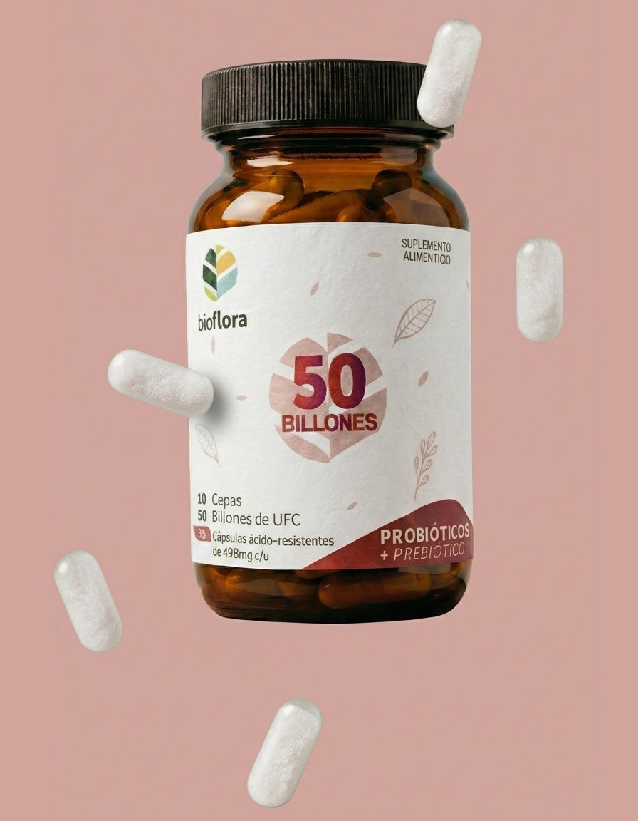 50 Billones de Bioflora es un suplemento probiótico que contiene una mezcla poderosa de cepas bacterianas beneficiosas.